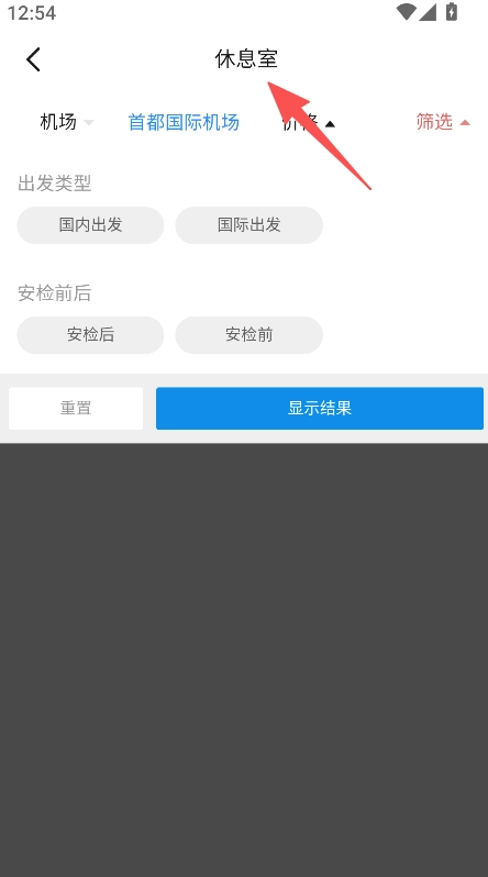 3、拥有机场场所筛选的功能,能够选择出发类型的安检时段,点击显示结果后即可获取相应的场所信息。