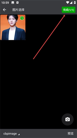 3、选中目标图片后,点击界面右上角的【完成(1/1)】按钮,就能进入选中图片的预览界面。
