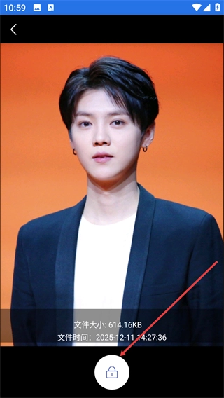 4、进入该预览界面,确认【文件大小:614.16KB】等信息后,点击底部带锁标识的按钮,完成该图片的加密操作。