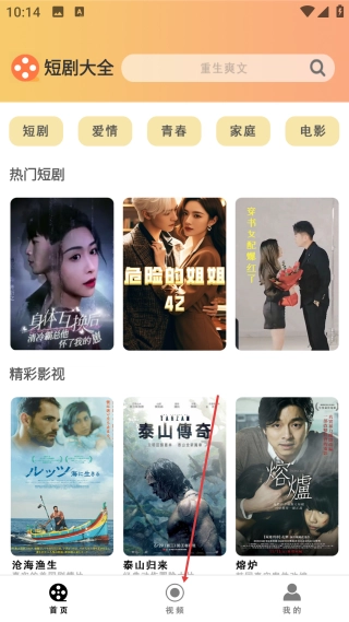 1、打开短剧大全首页后,点击底部的【视频】选项,即可进入播放器的功能选择页面。