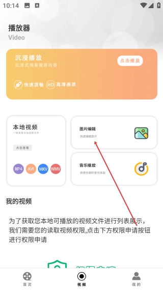 2、在播放器页面,点击【图片编辑】选项,即可进入用于选择图片的素材浏览页面。