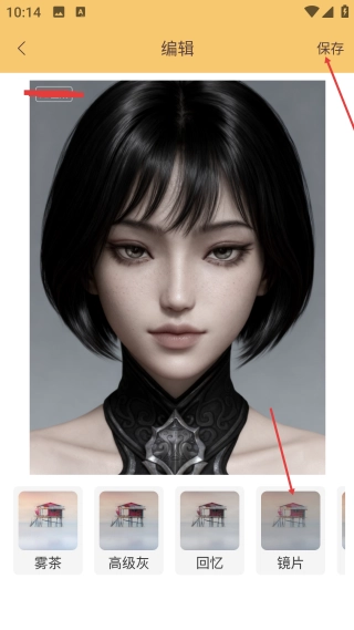 4、进入编辑页面后,先选择【滤镜效果调整】选项,接着点击【保存】按钮,这样就能完成图片编辑的操作了。