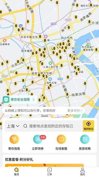 1、查找并选定想要的寄存点,点击寄存下单完成预约,详细操作请参照寄存指南;