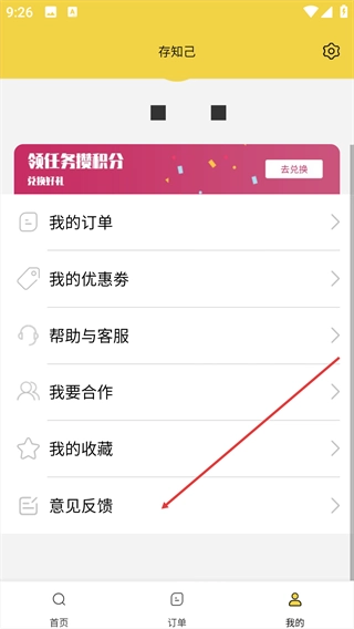 2、在【我的】页面,找到【意见反馈】选项并点击。