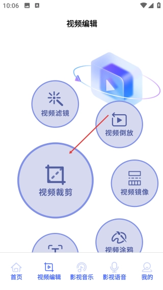 1、进入首页,点击底部【视频编辑】选项,进入视频编辑的功能选择页面。