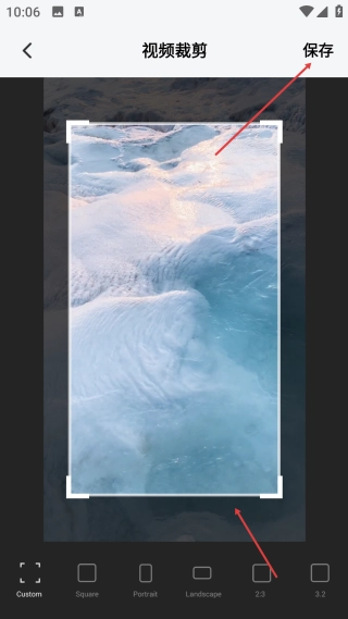 4、在裁剪页,【调整裁剪区域】后点击【保存】,即可完成视频裁剪的导出操作。