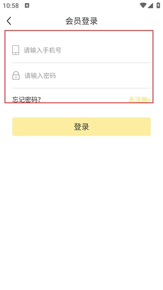 3、进入【会员登录】页面后,依次填写【请输入手机号】与【请输入密码】的内容,完成后即可提交登录。