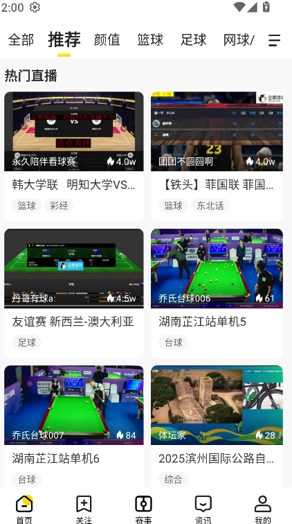 1、进入首页后,可直接观看热门赛事直播,实时跟进比赛进展。