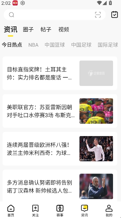 3、资讯阅读功能,集中展示体育热点新闻与最新动态。
