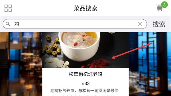 1、点击右上角的“搜索”图标,进入菜品搜索页面。