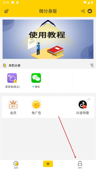 1、打开微分身版应用,点击底部导航栏的我的选项。