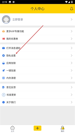 2、进入个人中心页面,找到隐私设置选项并点击。