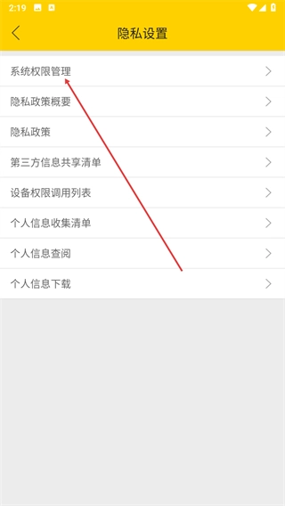 3、进入隐私设置页面后,找到并点击系统权限管理选项,进入其对应的界面。