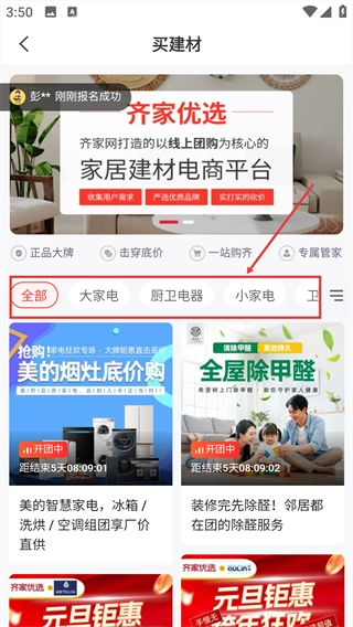 1、建材家居团购:严选一线建材家居品牌,线上预约即可锁定优惠价格,线下实现一站式集中采购;服务覆盖超百座城市,每日都有专属优惠,每周都有特色活动。