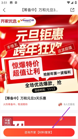4、点击“咨询齐家【材料管家】”按钮,就能联系到专属服务管家,获取该商品的相关咨询支持。
