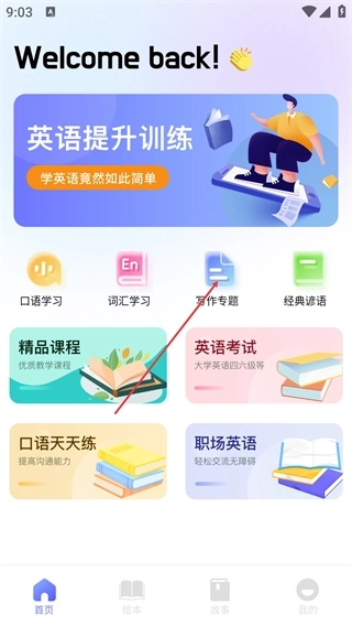 2、了丰富的有声英语绘本库,支持逐句点读跟读,有效帮助使用者锻炼听说能力与培养英语语感。
