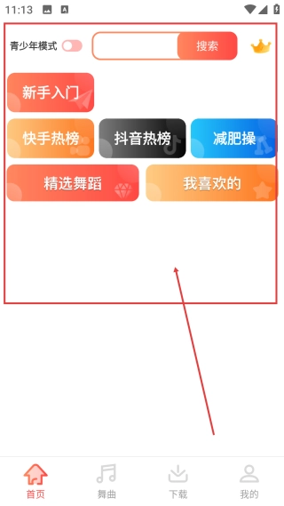 1、进入首页,可【切换青少年模式,通过搜索框查找内容】,选择新手入门等分类。