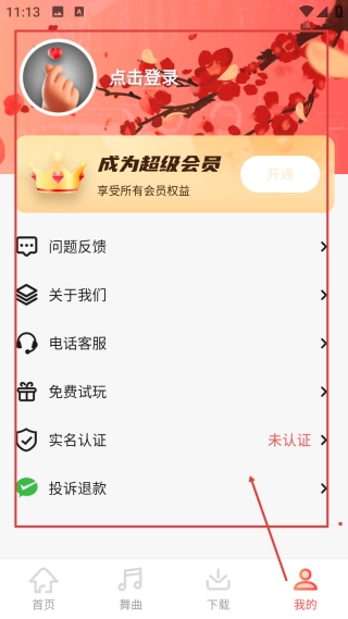 2、在我的页面,【登录后可开通会员】,进行问题反馈、实名认证等操作。