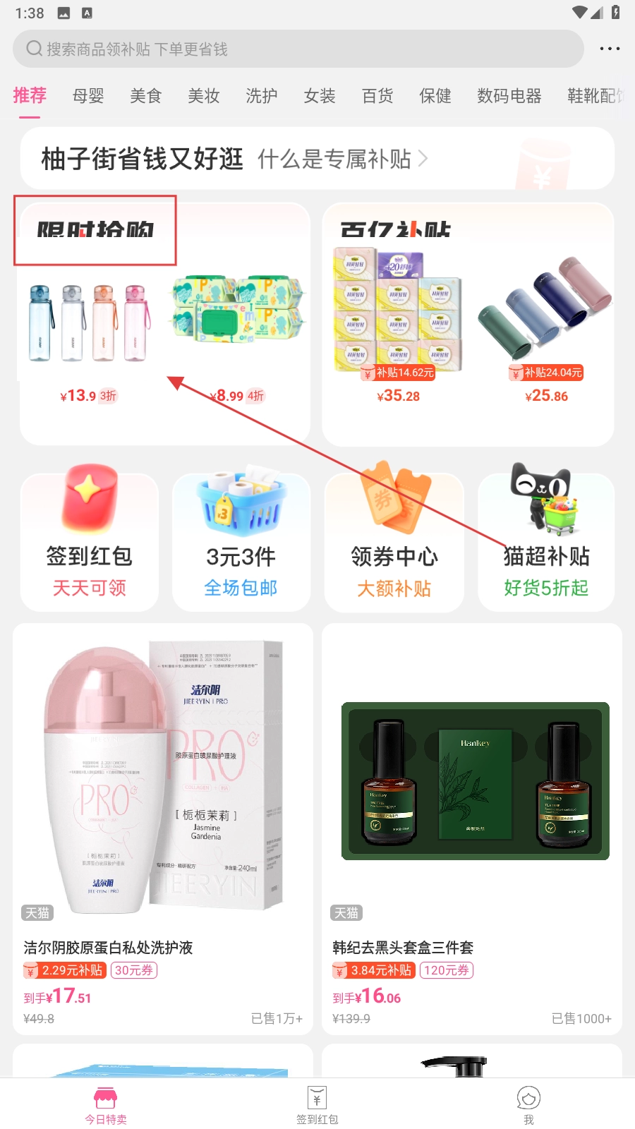 1、点击【限时抢购】,可查看各类限时优惠商品,把握超值购买机会。