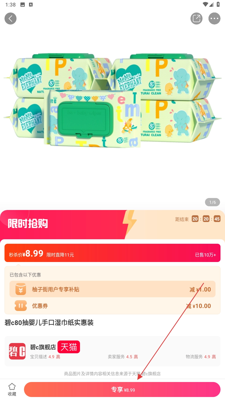 3、进入商品详情页,查看优惠信息后,点击【专享】按钮完成购买。