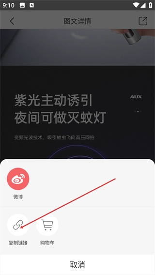 4、弹出分享选项,点击【复制链接】,分享该商品。