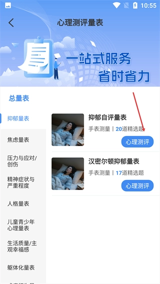3、进入心理测评量表页,点击【抑郁自评量表】。