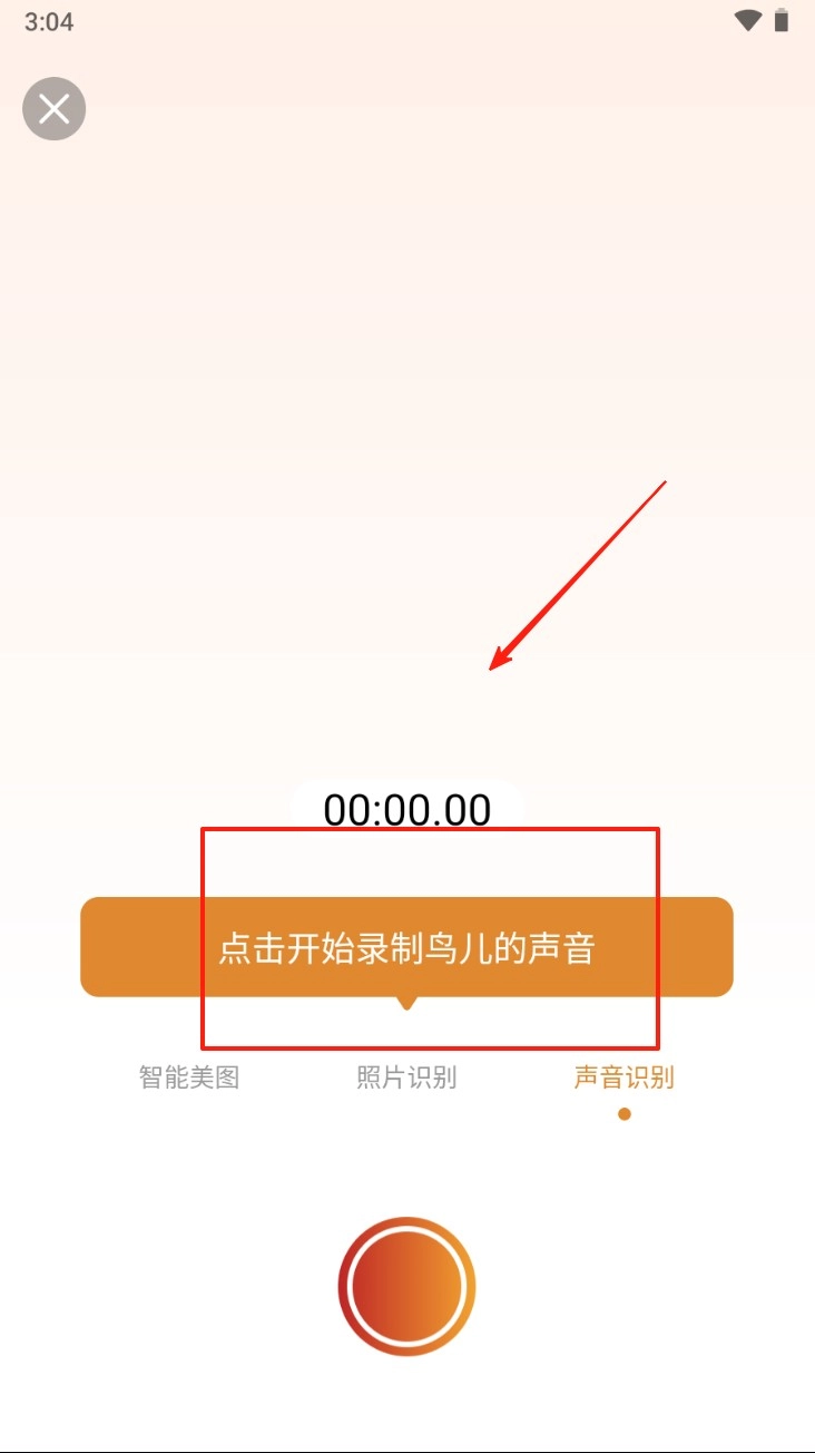 3、点击开始录制鸟儿的声音。使用声音识别功能来辨识鸟类。
