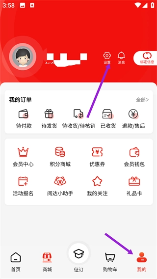 1、进入“我的”页面,点击顶部的【设置】选项。