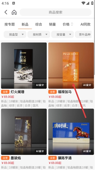 2、在商品分类页面,选择“定制礼盒”分类,进入该类目的商品搜索展示页面。