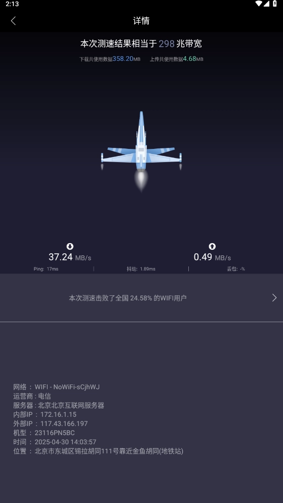 3、提供网速排名服务,能清晰展示用户的网速名次,帮助用户了解自身的网速水平。