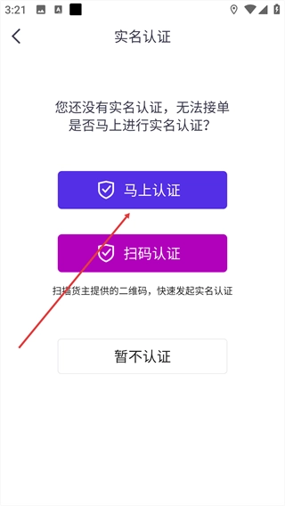 2、选择【司机】这一角色,然后点击与之对应的【马上认证】按钮。
