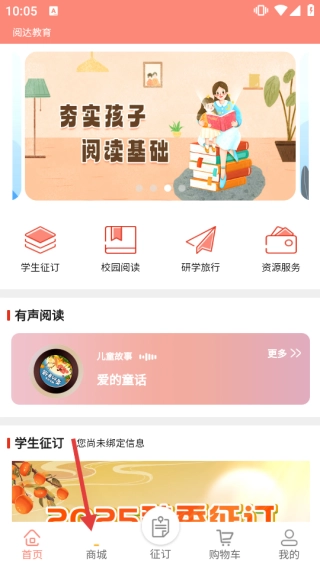 1、启动阅达教育应用,点击底部导航栏中的【商城】选项,进入阅达教育旗舰店界面。