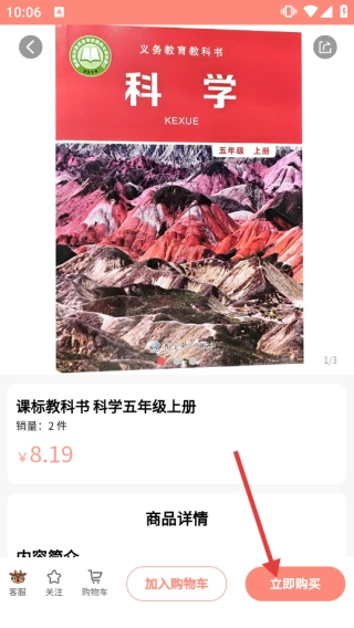 3、进入教材详情页面后,点击【立即购买】按钮即可完成教材的购买流程。