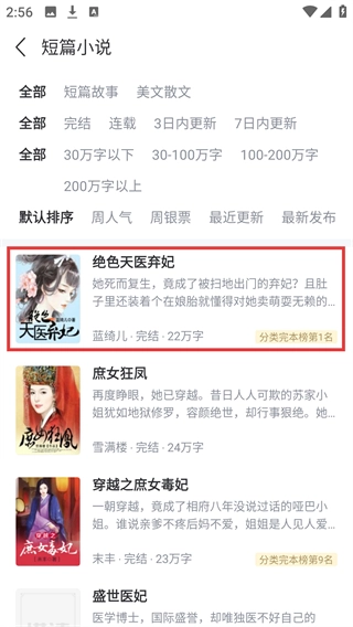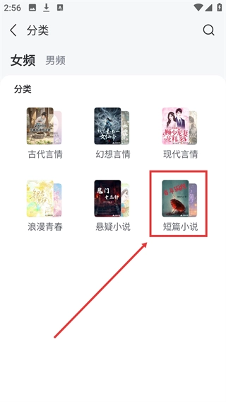 2、在分类页面选择【短篇小说】分类,进入对应的书籍列表页面,查看该类别下的书籍。