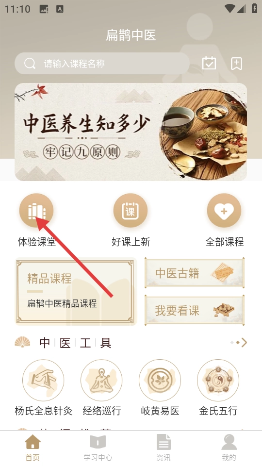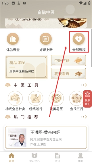 1、进入【扁鹊中医】首页后,点击【全部课程】按钮,即可进入课程列表页面。