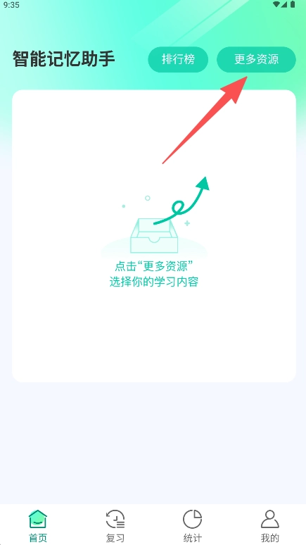 1、在软件首页点击右上角的“更多资源”按钮,即可进入资源库页面。