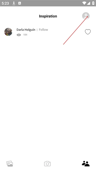 3、进入“Inspiration”页面后,点击右上角的头像图标,即可弹出登录界面。