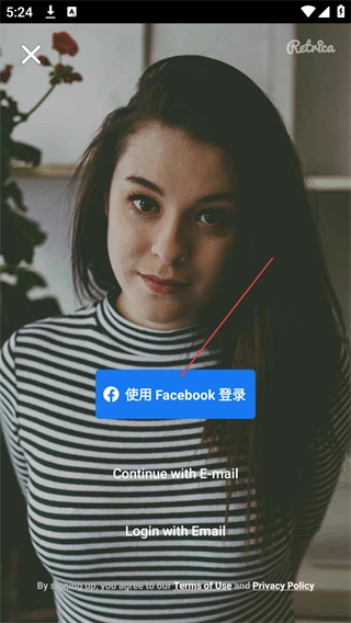 4、在登录界面,点击“通过Facebook登录”选项,依照相应流程完成账号登录步骤。