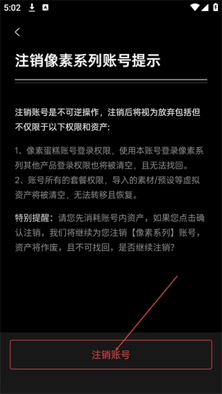 4、在注销提示页面,阅读不可逆操作说明,确认后点击“注销账号”按钮,即可提交账号注销申请。