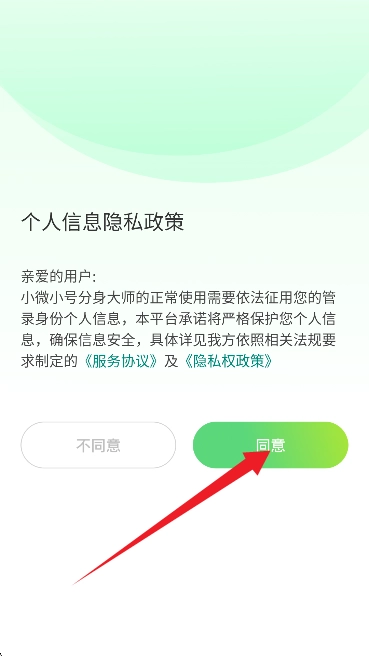 1、开启小微分身,阅读并同意用户协议与隐私条款后,点击确认进入功能主界面。