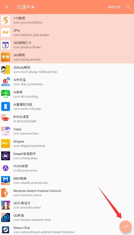 3、在列表里挑选想要进行分身的应用,点击底部的确认按钮,就能生成可以独立运行的副本程序。