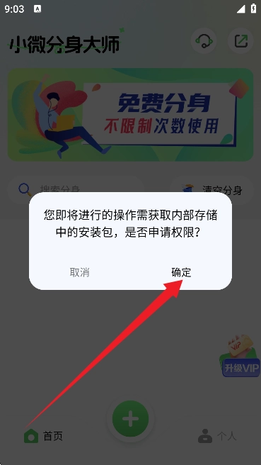 2、在应用主界面点击右下角的+号按钮来添加分身,随后进入应用程序分身的创建向导页面。