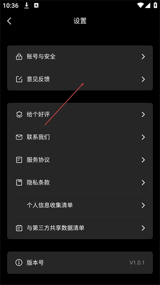 3、进入“设置”界面后,点击“意见反馈”选项,即可跳转至意见反馈页面。