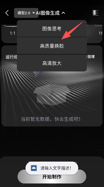 2、AI图像生成设多类功能,含图像思考高质量换脸高清放大,细化图像处理的不同方向。