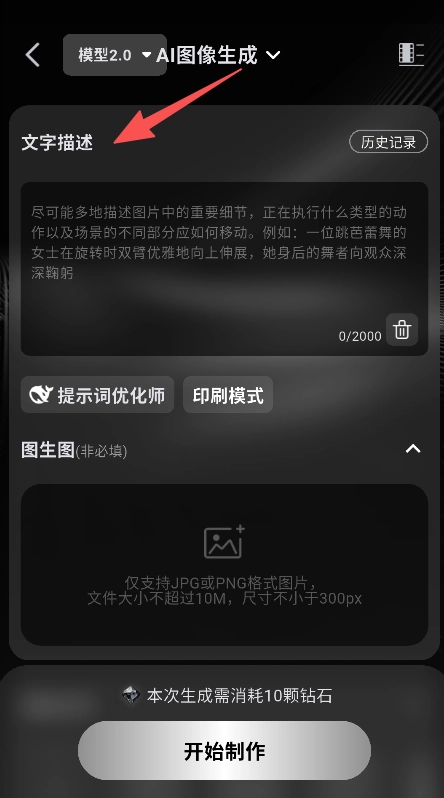 3、在文字描述框输入内容,点击开始制作生成图像。