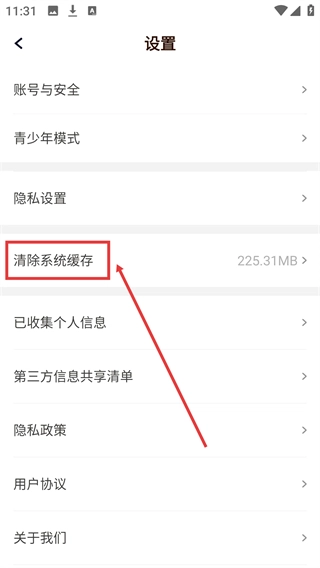 3、在【设置】页面,能看到【清除系统缓存】选项,点击可触发清理操作。