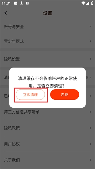 4、点击【清除系统缓存】后,会弹出确认弹窗,提示清理不影响账户使用,点击【立即清理】即可完成缓存清理。