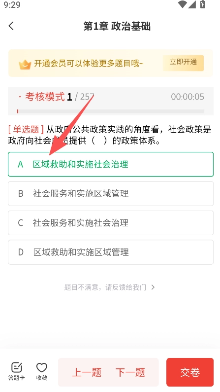 3、提供考核模式答题功能,进入章节页面,开始考核模式的题目作答。