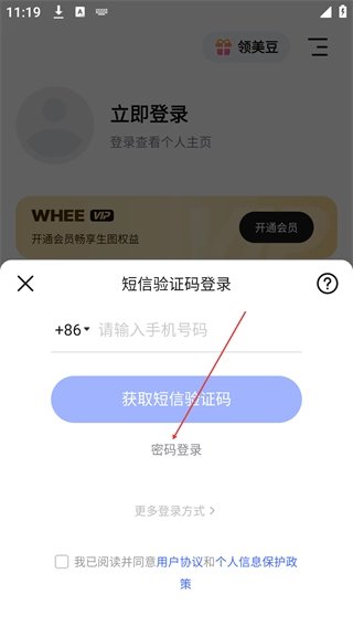 3、在登录界面中,选择“密码登录”选项,切换至手机号码密码登录页面。