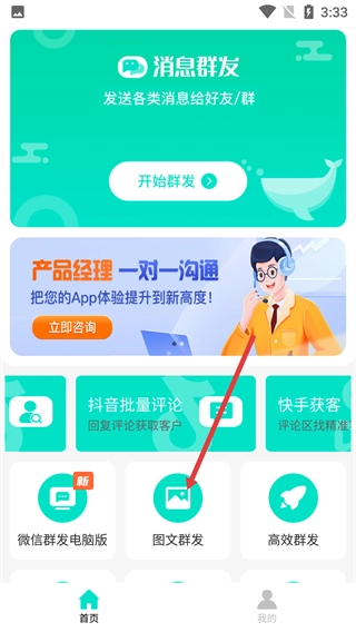 2、支持一键实现图文并发与多图群发,用户可一次性发送多张图片,增强内容展示效果,使推广过程更加直观生动,节省时间与精力。